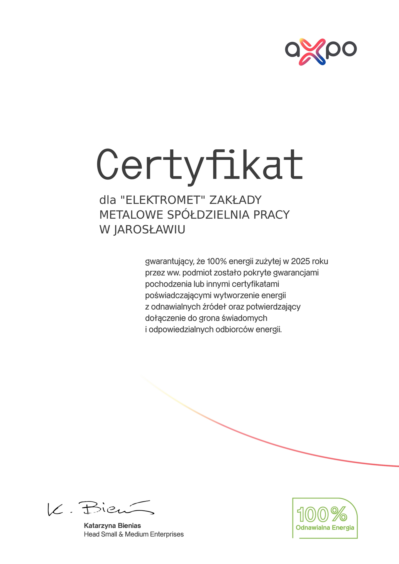 - Certyfikat zgodności Zakładowej Kontroli Produkcji obejmujący dla konstrukcji nośnych we wszystkich typach budowli
