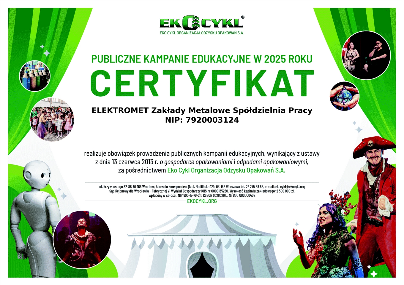 JAKOŚĆ naszej firmy potwierdzają uzyskane certyfikaty: